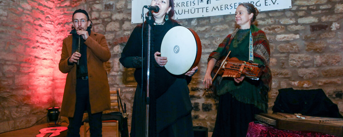 Am Sonntag verzauberte das Trio Aurago aus Leipzig und Thüringen uns mit folkloristischen Klängen. Mit historischen Instrumenten haben sie lyrische Werke der Romantik neu auferstehen lassen. In stimmungsvoller Atmosphäre haben wir gemeinsam mit euch diesen kalten Novembernachmittag verbringen dürfen. Um die Kälte zu vertreiben, konnten außerdem Speisen und heiße Getränke an unserem Ofen genossen werden.