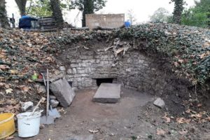 Nach Hinweisen unseres unterstützenden Denkmalschützers und Erkenntnissen aus vorhandenen Recherchematerial, wagten wir uns an eine bestimmte Stelle. Wir hatten Glück und konnten zwei sogenannte Kopfnischengräber freilegen. Bei der Suche sind wir noch auf ein Teilstück einer Sonnenuhr und einen größeren versteinerten Holzstamm gestoßen.